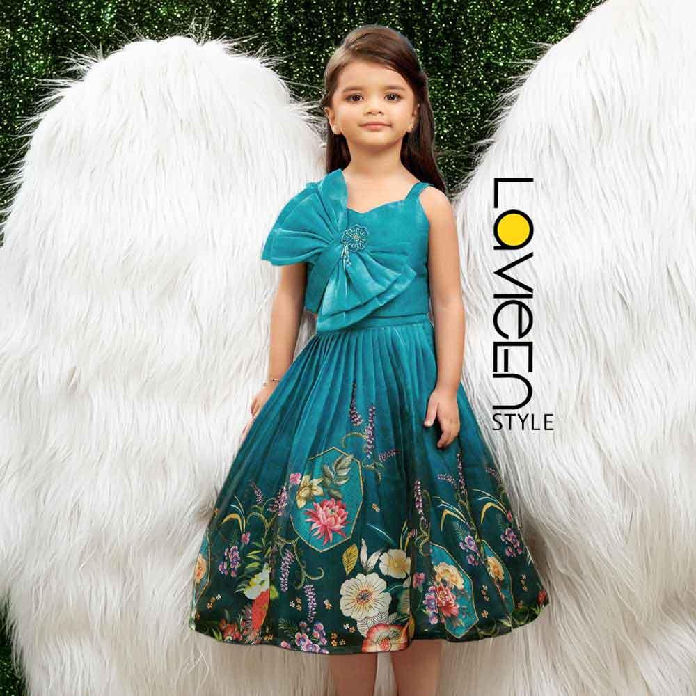 Indo-Western Lehenga Choli, Teal Blue with Multi-color Floral Prints, Premium Silk